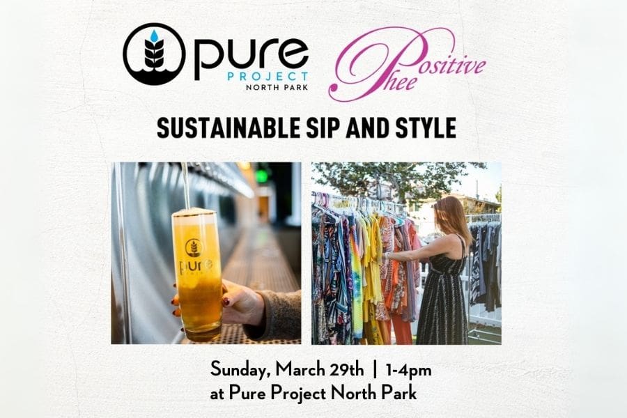 Join us at the North Park taproom on Sunday, March 29 from 1pm – 4pm for an elevated, feel-good fashion experience that blends circular style, local connection, and your favorite Pure Project pour.